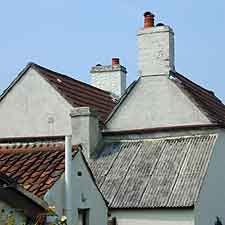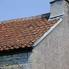 Roofs - simple gable ended and covered in natural red/orange overlapping clay pantiles, later double Roman - that age to a mellow burnt orange. Dormer windows are not common. Cat-slide roofs (lean-to at a lower roof pitch) were utilised on more rural buildings to increase the ground floor area