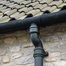 Guttering - if fitted, was cast iron supported on metal brackets fixed directly to stonework or to fascia boards if present