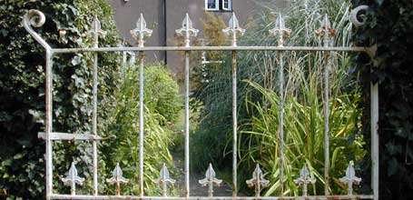 Ironwork - mostly removed in World War II. Originally, many boundary frontages were designed to incorporate wrought iron railings and gates. The more refined the building the more likely that expensive ironwork was a feature, although even unassuming buildings would often have an iron gate. Ironwork was typically simple in form and in keeping with the style of building